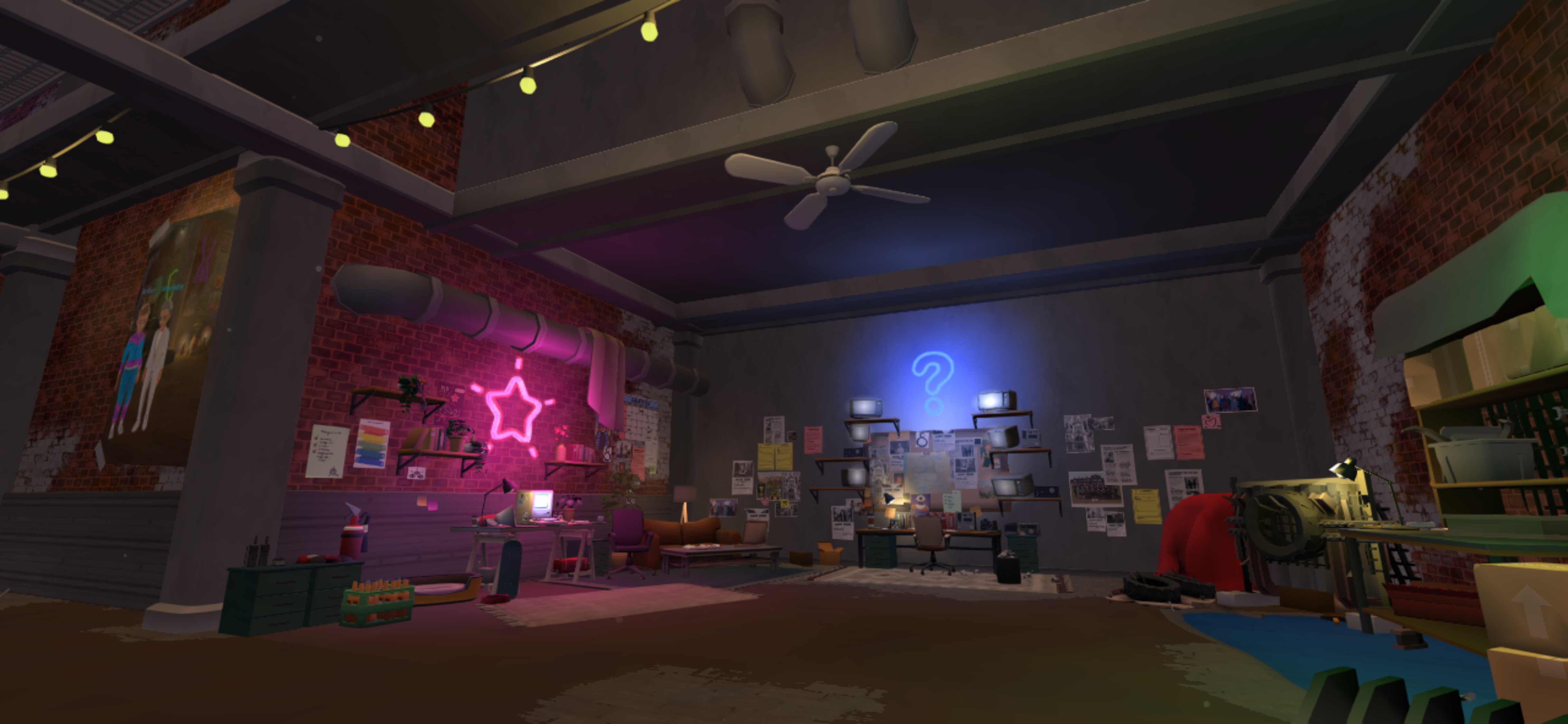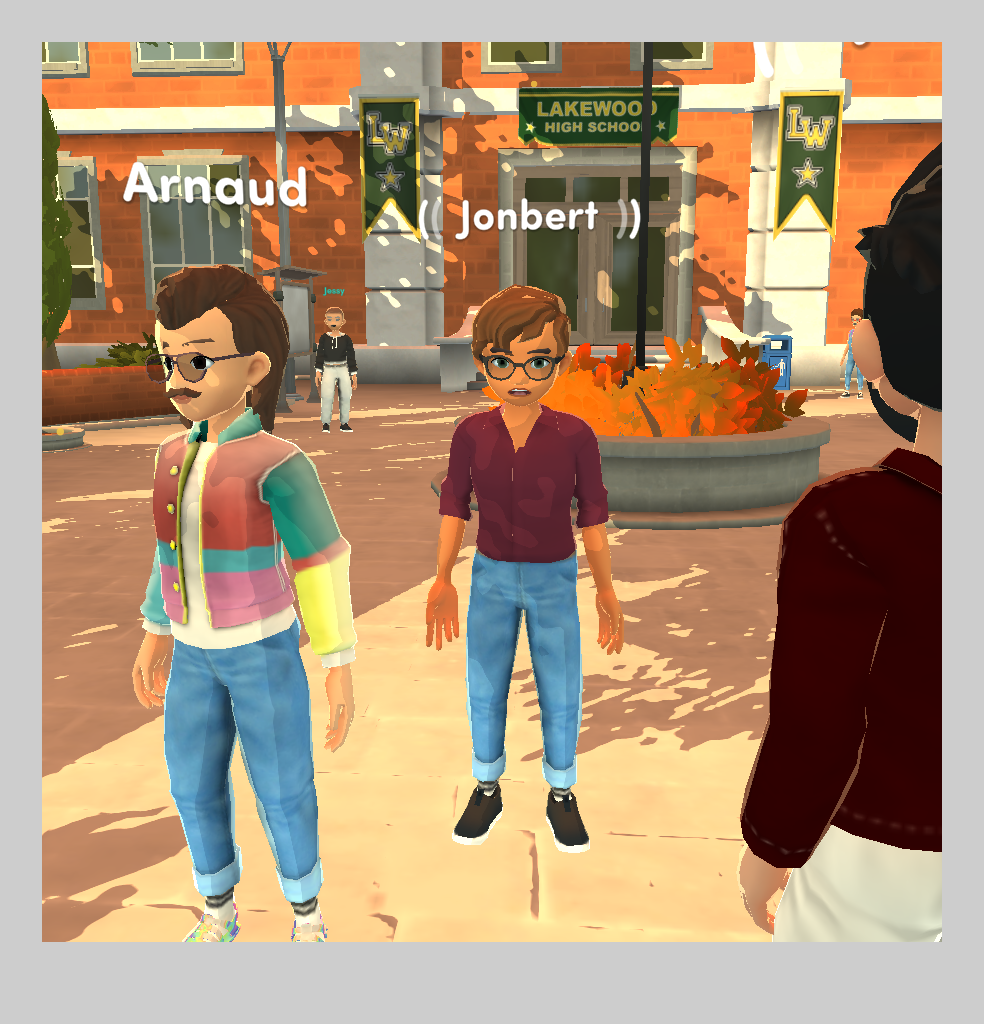 Between game sessions, players would wait for the next one in the courtyard of Lakewood High, talk, walk around, use emotes, and take selfies. I worked on the level design of this space, from greyblocks to producing the 3D assets, materials and shaders.